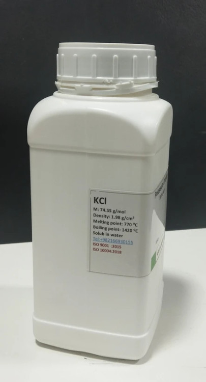 کلرید پتاسیم (KCl) یک ترکیب شیمیایی است که از پتاسیم و کلر تشکیل شده است. این ماده به صورت بلورهای سفید رنگ و بدون بو وجود دارد و در آب به خوبی حل میشود. برخی از ویژگیها و کاربردهای کلرید پتاسیم عبارتند از: