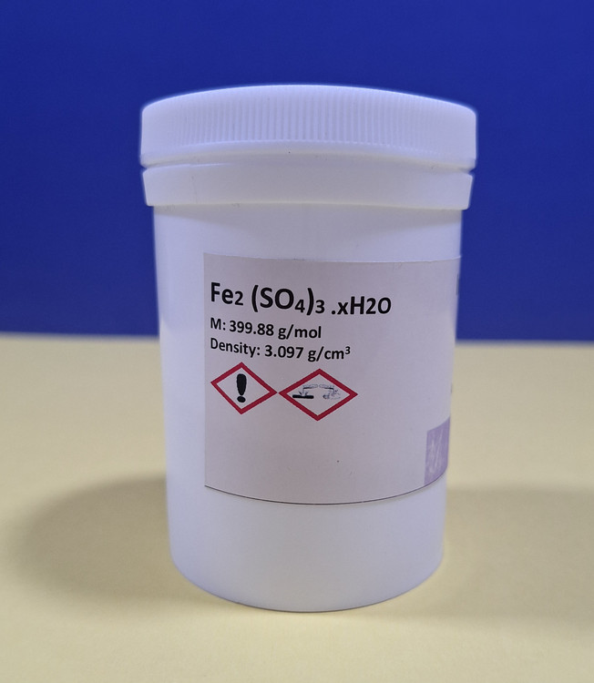 سولفات آهن (III) آبدار یک ترکیب معدنی با رنگ زرد تا قهوهای روشن است که حاوی یونهای آهن سه ظرفیتی (Fe³⁺) میباشد. این ماده به صورت بلورهای آبدار یا پودر کریستالی عرضه میشود و بسته به میزان آب تبلور، فرمول آن ممکن است به صورتهای متفاوتی ارائه شود. سولفات آهن (III) به دلیل قدرت اکسیدکنندگی و ویژگیهای شیمیایی خاص، در بسیاری از صنایع کاربرد دارد.