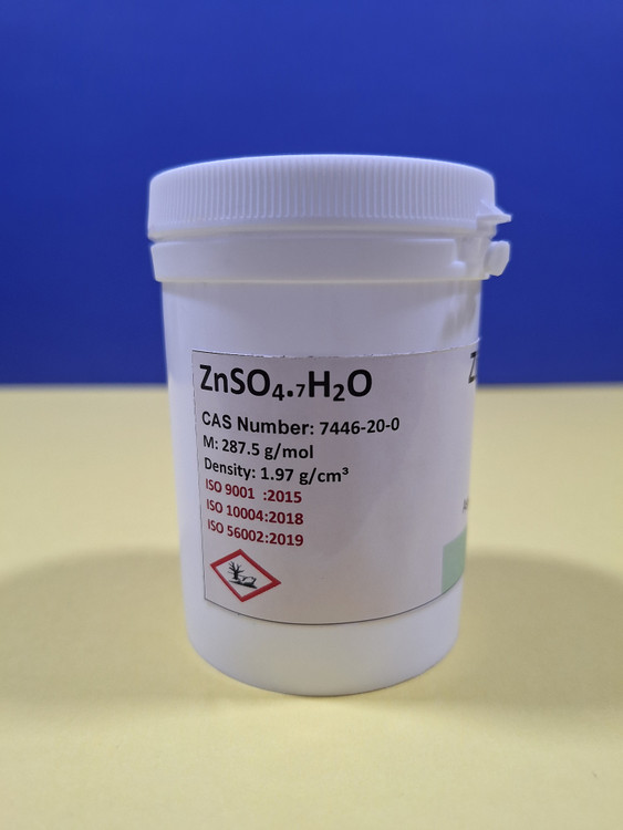 سولفات روی ۷ آبه یک نمک معدنی بلوری، سفید و محلول در آب است که از ترکیب روی، گوگرد و آب تشکیل شده و معمولاً بهصورت بلورهای شفاف یافت میشود. این ماده یکی از رایجترین منابع تأمین عنصر روی در صنعت، کشاورزی و داروسازی است.