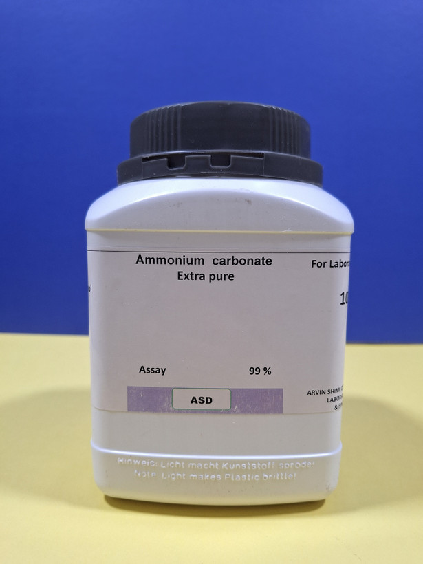 کربنات آمونیوم یک ترکیب سفید و بلوری است که دارای بوی تند آمونیاک میباشد. این ماده هنگام حرارت دادن تجزیه شده و گاز آمونیاک آزاد میکند. بهدلیل این خاصیت، در صنایع مختلفی از جمله تولید بیکینگپودر و بهعنوان عامل گازدهنده در صنایع غذایی استفاده میشود.