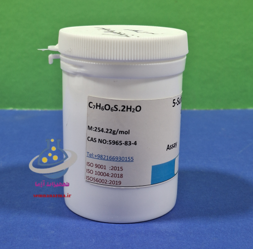 دستهبندی: مواد شیمیاییوزن: 100 گرمبرند: آروین شیمیفرمول شیمیایی: C7H6O6S.2H2Oتعداد آب: 2 آبهدرجه (گرید) : آزمایشگاهینمایش بیشتر